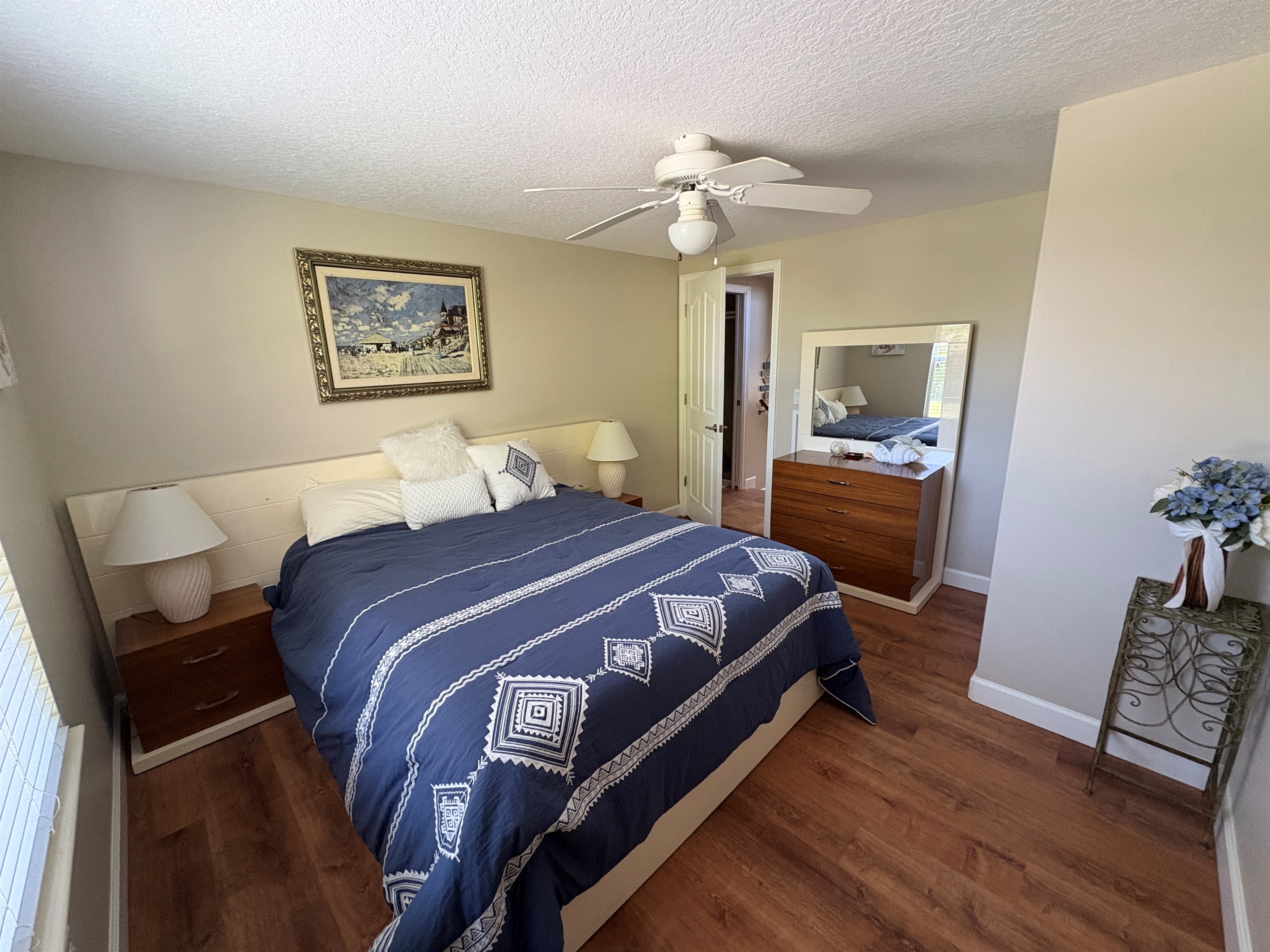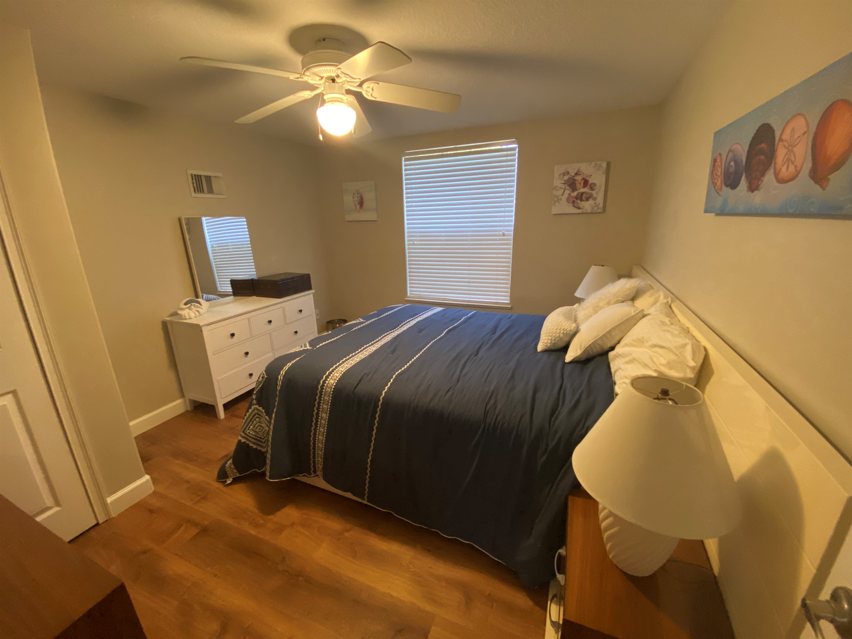 House Layout: You'll enter on the 1st floor where you'll find a large queen bedroom with adjacent screened-in porch. Rising 5 steps, you'll find a second queen bedroom with adjacent full bath. Rising to the main level, you'll enter the kitchen, great room, media room, and half bath. Down the hall is the master bedroom suite plus a second small bedroom with a single bed.